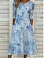 Sukienka maxi damska lniana oddychająca lekka kaftan rękaw 3/4 okrągły dekolt casual sukienka w fasonie A boho regularne dopasowanie grafika abstrakcyjny biały niebieski zielony khaki wiosna jesień