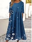 Wielka Sukienka Maxi Damska Lniana Przewiewna Lekka Kaftan 3/4 Długi Rękaw Okrągły Kołnierz Casual Sukienka A Linia Sukienka Boho Regular Fit Graficzna Liść Żółta Różowa Niebieska Fioletowa Wiosna
