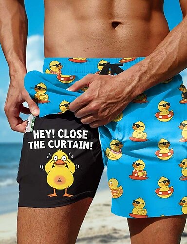 Męskie Zwierzę Ptak Zabawny slang Bokserki kąpielowe Szorty kąpielowe Spodenki surfingowe Średni Talia Zabawny Codzienny wakacje na plaży Boczne kieszenie Podszewka z siatki Elastyczny pas ściągany