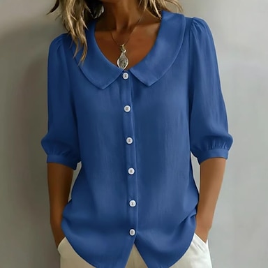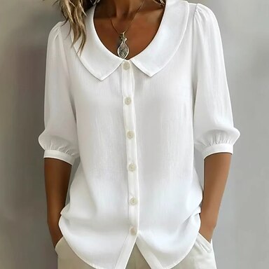 Damskie Koszula Kwiaty Elegancki Długi rękaw Kołnierzyk Piotruś Pan Zwykłe topy Codzienny Streetwear Praca Biały Żółty Jasnoniebieski Lato Wiosna