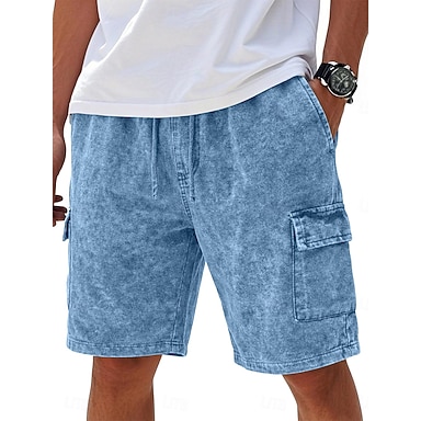 Męskie Spodenki cargo Szorty Szorty na co dzień Spodenki Acid Wash Ściągana na sznurek Elastyczny pas Multi Pocket Jeden kolor Komfort Oddychający Do kolan Codzienny Streetwear Urlop Moda Codzienny