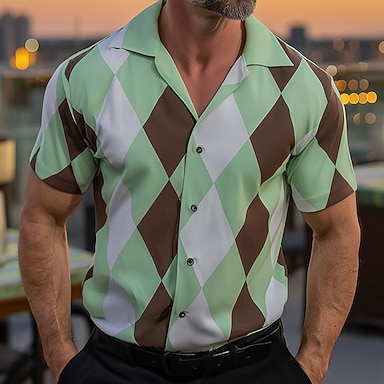 Męskie Geometryczny W romby 钻石纹 Koszula Zapinana na guziki koszula Koszula obozowa Krótki rękaw Moda na co dzień Streetwear Urlop Lato Wiosna Kubański kołnierz Druk 3D Niebieski Rumiany róż Fioletowy
