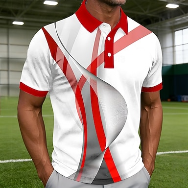 Męskie Geometryczny Golf Koszulki sportowe polo Krótki rękaw Koszulki polo Klapa Codzienny Athleisure Druk 3D Guziki Wiosna i lato Czerwony Niebieski Fioletowy