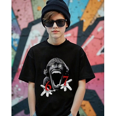Bawełna Dzieci Dla chłopców Czarny Graficzny Zabawny slang 67 Podkoszulek Bluzka Półgolf Krótki rękaw Na zewnątrz Na co dzień Moda Moda miejska Designerskie Drukowanie Lato