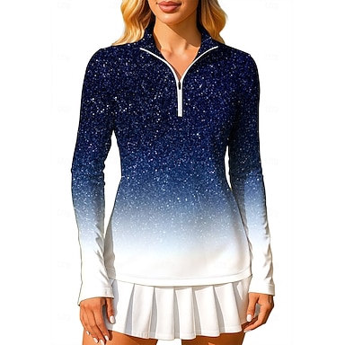 Damskie Gradient Bluza Polo Topy Koszula Koszulka sportowa Długi rękaw Nadruk Quarter Zip Pullover UPF50+ Odporny na UV Ochrona UV Elastyczny Oddychający Siatkówka Bransoletka tenisowa Golf Kołnierz