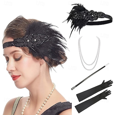 Zestaw Zabytkowe Stroje Wielki Gatsby Strój na bal maskowy Damskie Karnawał Walentynki Bal maskowy Studniówka Karnawał Impreza Doroślu Dla dorosłych 1 Naszyjnik Rękawiczki Czapki Wiosna Na każdy sezon