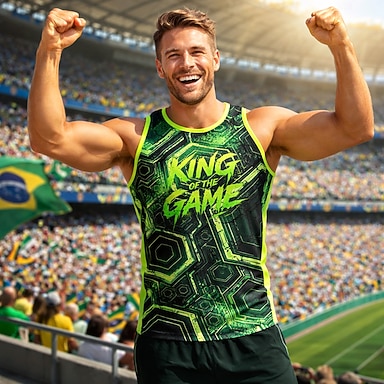 Męskie Koszulka piłkarska Geometryczny Kolorowy blok Litera Abstrakcja Koszulka treningowa Koszulka bez rękawów do biegania Koszulka sportowa Lato Bez rękawów UPF 50 Szybkie wysychanie Odprowadza