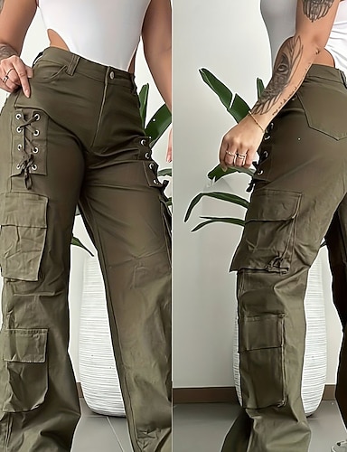 Damskie Spodnie cargo Typu Chino Urlop Zabytkowe Moda miejska Pełna długość Średia talia Jednokolorowe Multi Pocket Wygodne Średnio elastyczny Codzienny Na zewnątrz Ulica Zieleń wojskowa Khaki Wiosna