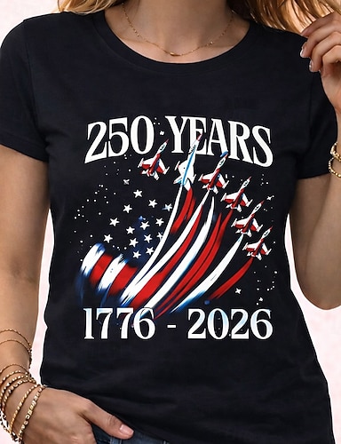 Odzież patriotyczna na Dzień Niepodległości Amerykański 250. rocznica Koszulka dla kobiet Nadruk Grafiki z flagą Vintage Stylowa Klasyczna Krótki rękaw V-kształtny Regularne bluzki Codzienne