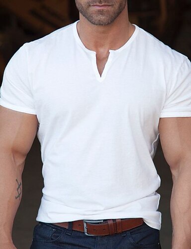 Męskie Podkoszulek Koszulka Krótkie rękawy Równina Moda Designerskie Podstawowy W serek Urlop Ulica Wyjściowe Lato Czarny Biały Granatowy Koszulka Henley