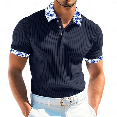 Męskie Teksturowany Koszula golfowa Codzienny Praca Prążkowany kołnierzyk polo Klasyczny Krótki rękaw Podstawowy Nowoczesny Jednokolorowe Kolorowy blok Prążkowany Lato Wiosna Wiosna i lato Regularny
