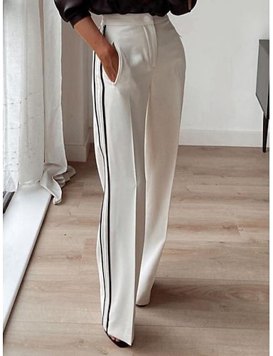 Damskie Spodnie Garnitury Luźne spodnie Moda Moda miejska Codzienny Pełna długość Wysoka talia Równina Zamek Kieszeń Prosta noga Komfort Lekki Miękka Średnio elastyczny Na zewnątrz Praca Ulica Czarny