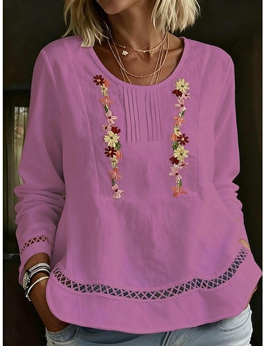 Damskie Koszula Koszule bawełniane lniane Bluzka Niejednolita całość Równina Elegancki Podstawowy Klasyczny Długi rękaw Kołnierzyk koszuli Zwykłe topy Codzienny Święto Wyjściowe Niebieski Biały