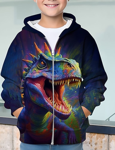 Dziecięca koszulka chłopięca z długim rękawem 3d drukuj dinozaur zwierzęcy okrągły dekolt zielony dzieci topy jesień wiosna aktywny moda codziennie na zewnątrz regularny krój 3-12 lat