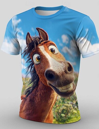 Męskie Zwierzę Konik Śmieszne Podkoszulek Krótki rękaw Podkoszulek Druk 3D Półgolf Koszula Przesadny Designerskie Impreza Święto Niebieski 2# Niebieski 1# Lato Wiosna Odzież S M L XL XXL XXXL