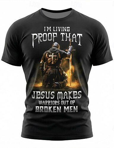 Męskie Templariusze Křížky Podkoszulek Krótki rękaw Podkoszulek Druk 3D Półgolf Koszula Religijne Patriotyczny Codzienny Impreza Ulica Czarny 1 Czarny 2 Lato Wiosna Odzież S M L XL XXL XXXL