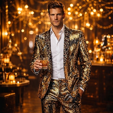 Dyskoteka Lata 80 Smokin Frak Dyskoteka Cekiny Strój na bal maskowy Męskie Strój karnawałowy Bal maskowy Impreza Kij Parada równości Dla dorosłych Płaszcz