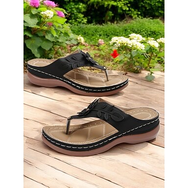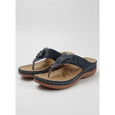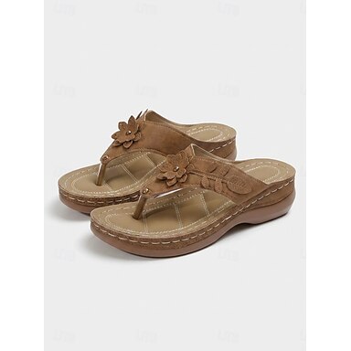 Damskie sandały na koturnie z kwiatowym wzorem i wyściełaną wkładką, codzienne klapki damskie na lato, na spacery, wakacje, na plażę, w podróż &odzież codzienna