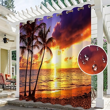 Wodoodporna zasłona zewnętrzna zasłony na patio zasłony pergolowe z oczkami 3D krajobrazu oceanu i plaży do altany balkonu werandy przyjęcia 1 panel