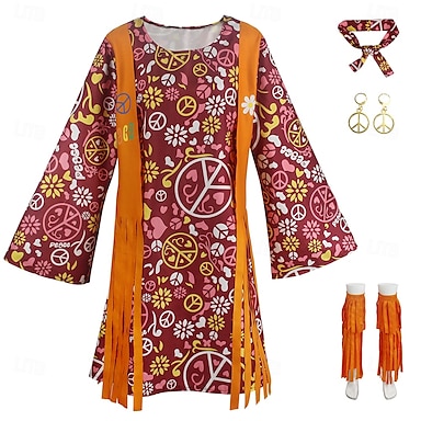 Retro / vintage Lata 60 Hipisowskie Sukienka Kostium Cosplay Opaska na głowę Hipisowskie Dyskoteka Frędzel Strój na bal maskowy Damskie Dla dziewczynek Halloween Karnawał Bal maskowy Spektakl Bal