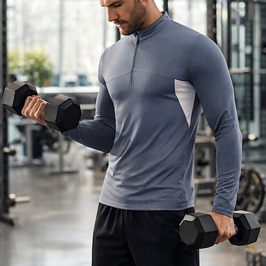 Męskie Solidne kolory Běžecké tričko Koszulka kompresyjna Koszulka do biegania Lato Wiosna Quarter Zip Długi rękaw Szybkie wysychanie Kompresja Odprowadza wilgoć Oddychający Trening w siłowni