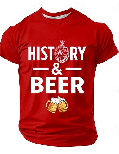 Męskie Piwo Historia Podkoszulek Krótki rękaw Podkoszulek Druk 3D Półgolf Koszula Moda Codzienny Codzienny Ulica Niebieski Czarny Czerwony Lato Wiosna Odzież S M L XL XXL XXXL