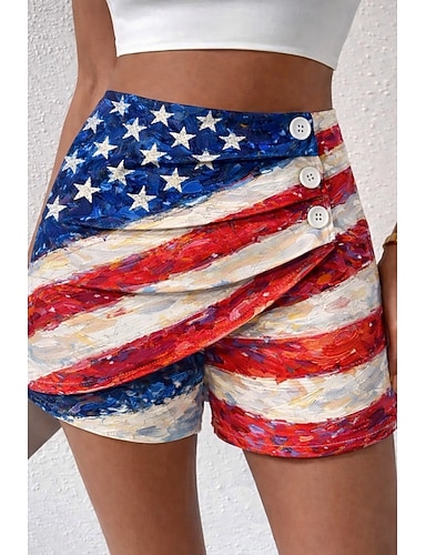 Dzień Niepodległości Patriotic Women's Chinos Shorts Wakacyjne Vintage Etniczny Styl Krótkie Spodenki Wysoki Stan Pantalony Graficzna Flaga Plisowane Warstwy Wygodne Nieelastyczne Codzienne Na
