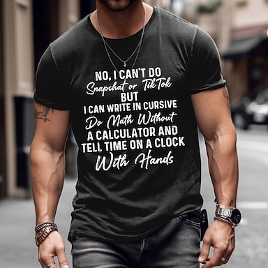 Męska klasyczna koszulka graficzna 'Brak Snapchata/TikToka ale pisanie kursywą matematyka i analogowy zegar' Zabawna koszulka z krótkim rękawem