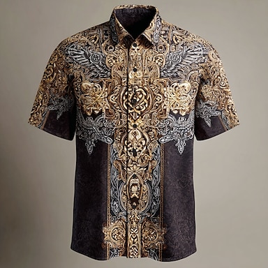 Męskie Krzyż celtycki Koszula Letnia koszula Zapinana na guziki koszula Krótki rękaw Vintage Retro Na co dzień Święto Lato Wiosna Wieczorne Druk 3D koszule z kołnierzykiem Jedna kieszeń z przodu