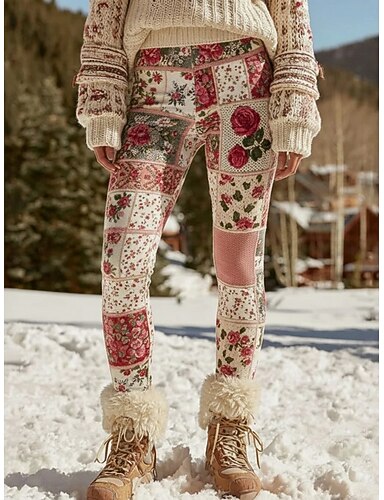 Damskie Getry Przytulne legginsy Urlop Zabytkowe Styl etniczny Pełna długość Wysoka talia Kwiaty Kratka Drukowanie Wygodny Elastyczny Codzienny Urlop Święto Rumiany róż Wiosna Jesień Zima Opinający