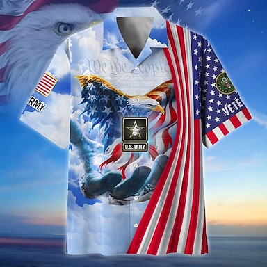 Męskie 4 lipca 250. rocznica powstania Stanów Zjednoczonych Orzeł Flaga Ameryki Koszula Koszula kubańska Krótki rękaw Vintage Retro Urlop Święto Festiwal Lato Wiosna Koszula z kołnierzem obozowym