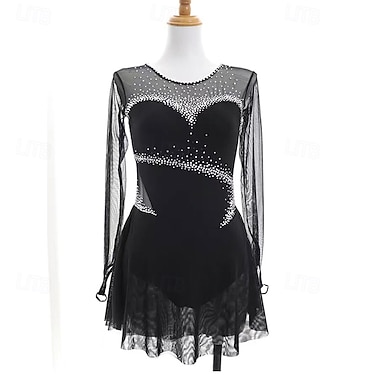 Sukienka łyżwiarska Damskie Dla dziewczynek Bruslení Sukienka Czarny Otwórz Wróć Siateczka Spandeks Elastyczny Szkolenie Trening Profesjonalny Odzież łyżwiarska Keep Warm Kryształ / Kryształ górski
