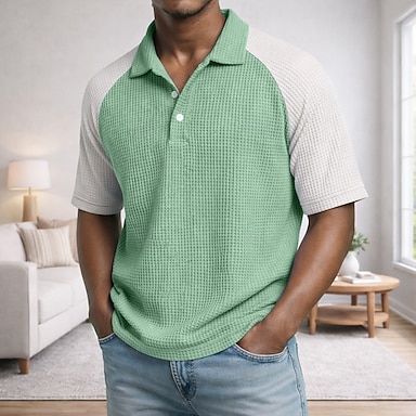 Męskie Koszulki polo waflowe Teksturowany Codzienny Święto Wieczorne Krótki rękaw Podstawowy Nowoczesny Kolorowy blok Kolorowy blok Guziki Wiosna i lato Niebieski Czerwony Granatowy Brązowy Zielony