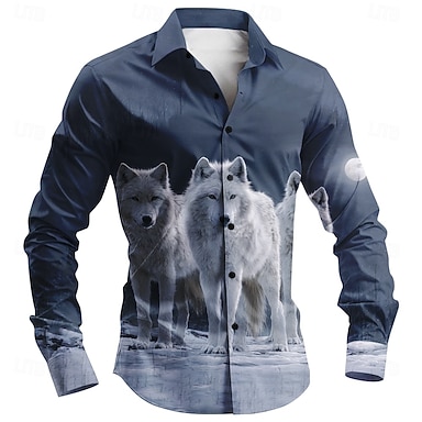 Męskie Zwierzę Wilk światło księżyca Koszula Zapinana na guziki koszula Długi rękaw Vintage Retro Codzienny Na zewnątrz Łowiectwo Wiosna Jesień Wieczorne Druk 3D koszule z kołnierzykiem Niebieski