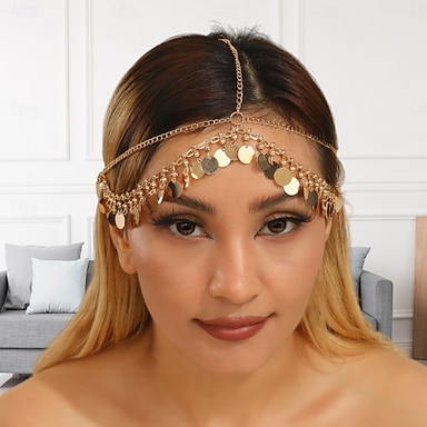Karnawał 2026 Rio Karnawał Akcesoria Samba Boho Złoty Łańcuch na Czoło z Monetami|l Strój Wydajności