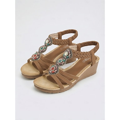Damskie sandały w stylu boho w kolorze morelowym z koralikami z kamieni szlachetnych – pasek w kształcie litery T z klejnotami na wakacje w kurorcie, śluby na plaży &tropikalne wypady