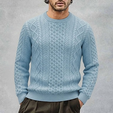 męski irlandzki sweter sweterek sweterek z dzianiny prążkowany warkocz dzianinowy regularny top dzianinowy gładki okrągły dekolt vintage utrzymujący ciepło codzienne ubranie odzież na wyjścia odzież jesień zima