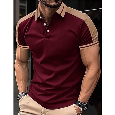 Męskie Koszula golfowa Pikowe koszulki polo Praca Biznes Klapa Prążkowany kołnierzyk polo Krótki rękaw Podstawowy Nowoczesny Kolorowy blok Kieszeń Lato Regularny Biały Burgundowy Granatowy