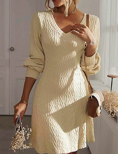 Damskie Sukienka mini Codzienne sukienki Moda Klasyczny Nowoczesny Na zewnątrz Urlop Święto Regularny Równina Długi rękaw W serek Czarny Rumiany róż Morelowy Lato