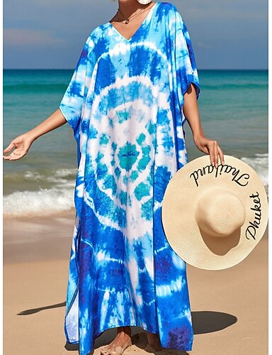 Damskie Sukienka maxi sukienka plażowa Codzienne sukienki Sukienka Boho Cover Up Elegancja Moda Nowoczesny Na zewnątrz Urlop Wyjściowe Luźna Abstrakcja Rękaw 1/2 W serek Niebieski Rumiany r