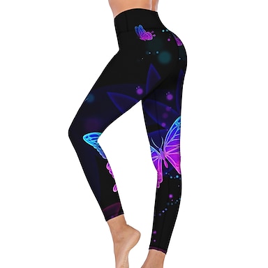 Damskie Spodnie do jogi Podnoszenie pośladków Wyszczuplenie brzucha Wysoka talia Trening w siłowni Bieganie Zdatność Rajstopy Getry Nadruk Fioletowy Jesień Zima Sport Odzież sportowa Wysoka