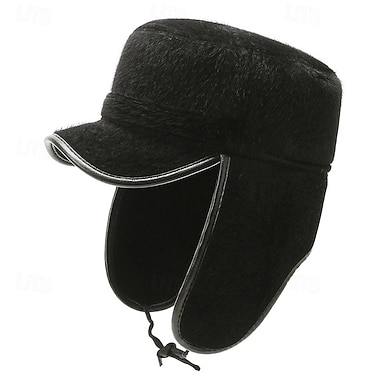 Męskie Czapka z klapką na uszy Zimowy skórzany kapelusz Czapki zimowe Ciepła czapka zimowa Czapka zimowa z nausznikami Czarny Poliester Polar Moda Współczesny współczesny Dzienne zużycie Randka