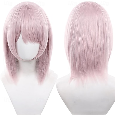 Peruka cosplayowa długie proste różowe włosy z grzywką dla kobiet halloween cosplay