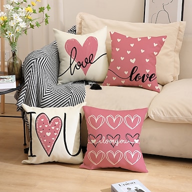 Różowa poszewka na poduszkę z okazji Walentynek, z nadrukiem "miłosnego" listu i wzorem serca, uniwersalna dekoracyjna poduszka na sofę, do salonu, idealna jako dekoracja domu na Walentynki i