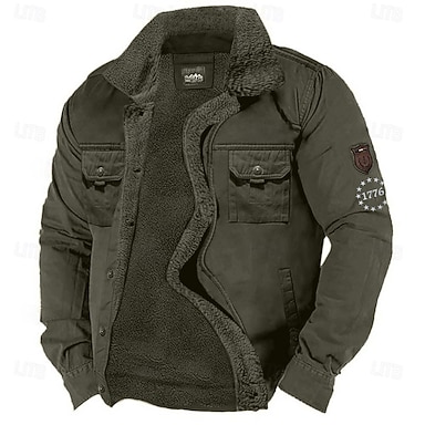 Męskie Graficzny 1776 Kurtka polarowa Kurtka cargo Kurtka Sherpa Keep Warm Zabytkowe Codzienny Na zewnątrz Dom Wiele kieszeni Kurtki bawełniane Płaszcze zimowe Jesień Zima Kołnierz z polaru z
