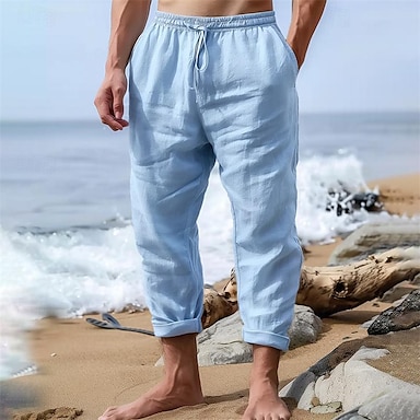 Męskie Lniane spodnie Letnie spodnie Spodnie plażowe Spodnie Harem Ściągana na sznurek Kieszeń Elastyczny pas Równina Komfort Oddychający Do kostek Urlop Codzienny Święto Hawajskie Boho Błękit