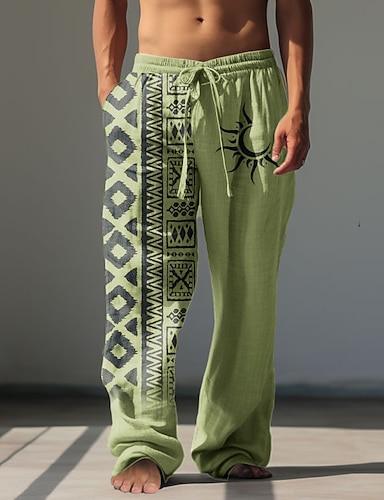 Męskie Słońce Plemienny Spodnie codzienne Spodnie Luźne spodnie Średni Talia Zabytkowe Na zewnątrz Streetwear Dzienne zużycie Jesień i zima Koniczyna Khaki Szary