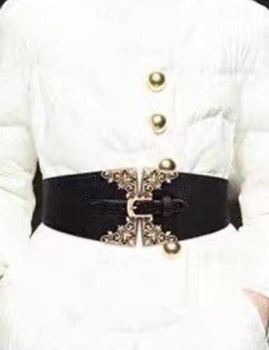 Damskie Pas PU Czarny Szeroki pasek Codzienny Weekend Kwiaty
