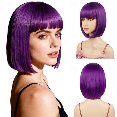 Peruka karnawałowa 2026 Blond Czarny Niebieski Prosta Bob Krótkie Peruka syntetyczna festiwalowa Mardi Gras Parada Włosy do kostiumu cosplay na Damskie