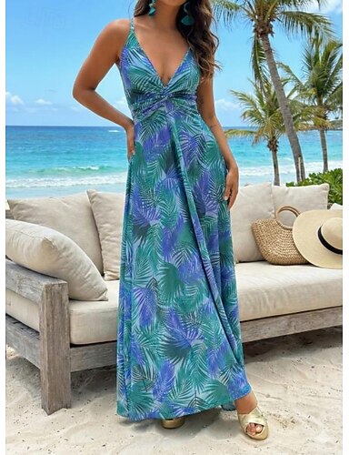 damska sukienka na co dzień sukienka typu swing sukienka slip kwiatowy liść nadruk z odkrytymi plecami długa sukienka na ramiączkach sukienka maxi hawajska codzienna na wakacje bez rękawów lato